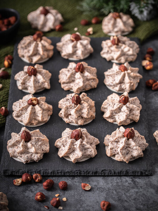Ich denke da zum Beispiel an die Cinnamon Roll Cookies, die Tonka Nougatcreme Plätzchen oder die Bienenstichtaler. Aber auch hübsche Swirl Cookies oder Schoko Gewürzplätzchen reihen sich hier ein.